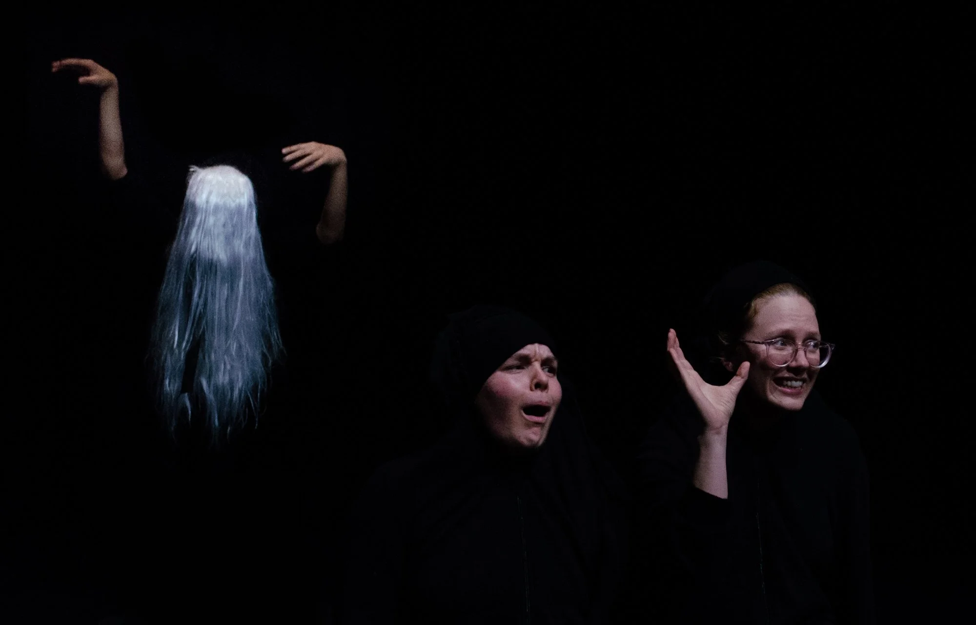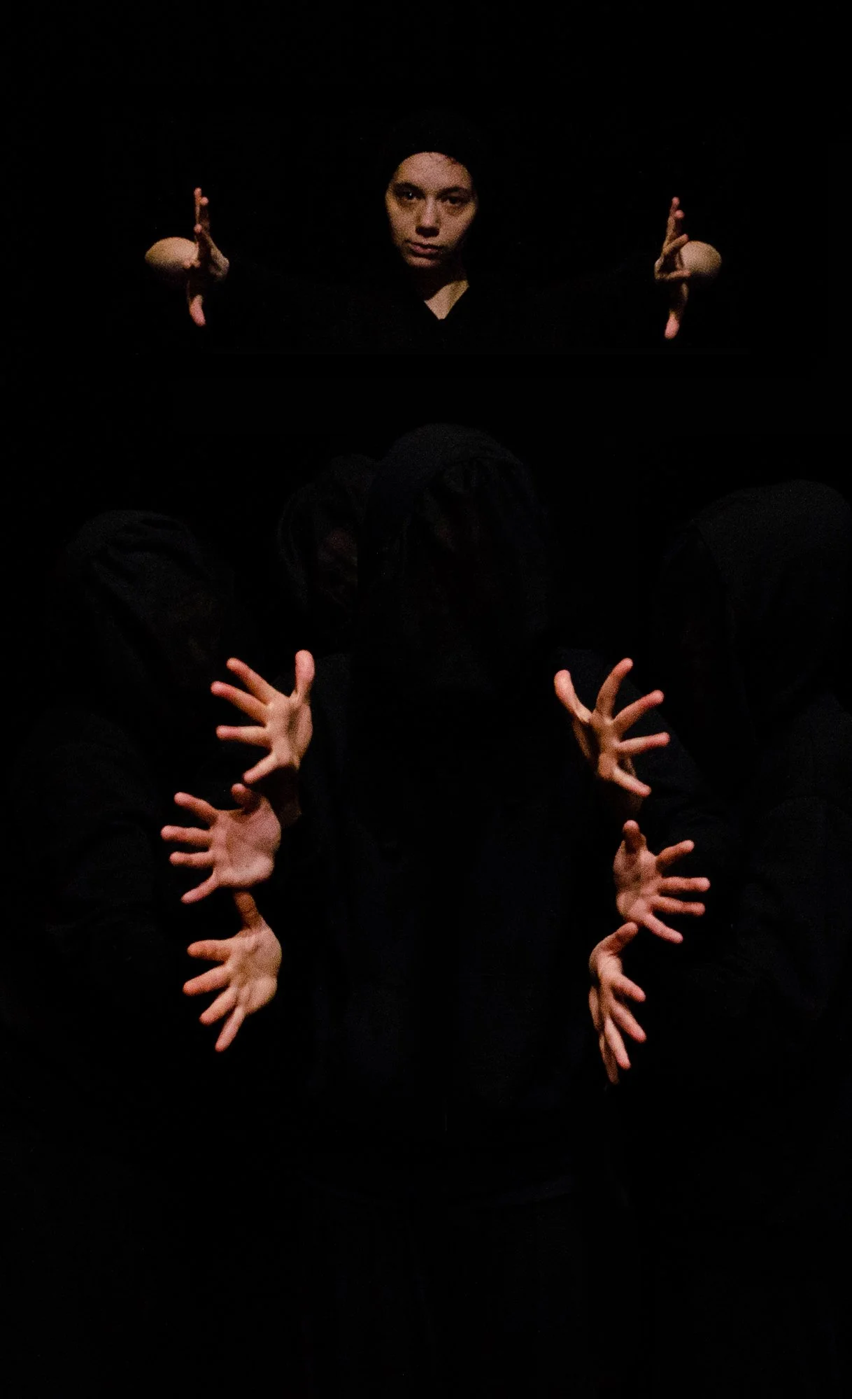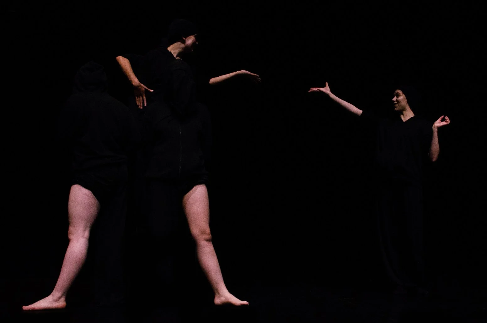 Ascent (2018) had a short season as part of the Melbourne Fringe Festival at one of Melbourne’s leading homes of independent theatre, Theatre Works, on September 28, 29 and 30, 2018. The initial concept for the work emerged whilst undertaking an informal writing project and was subsequently fleshed out over a series of independent writing sessions, group workshops and rehearsals throughout 2018. The workshops took place with a group of actors with whom I had been doing some experimental physical and vocal training. The final cast who performed the show consisted of Marty Alix, Jordan Barr, Kala Gare, Willow Sizer and Jessica Vellucci. This casting reflected an intuitive attention towards intersectional-feminism, as some of these performers identified as queer and all but Marty identified as female (he identified as a queer man of colour). The music and sound was composed by my frequent collaborator, Imogen Cygler.