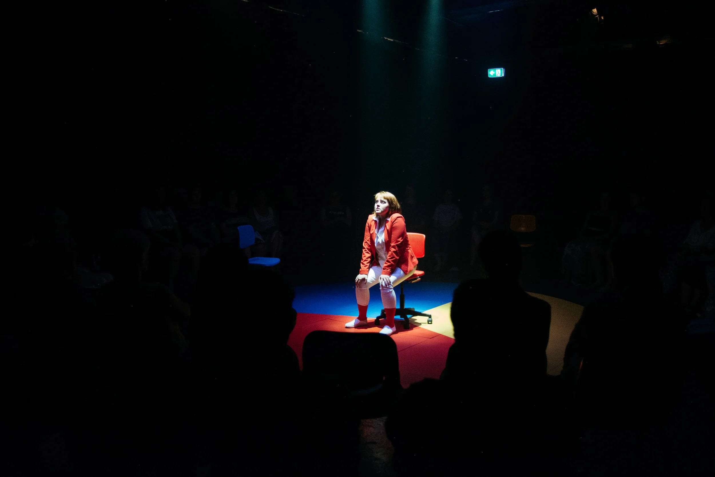 In this show I was aiming to create a work with autistic collaborators that both honoured their story and could be accessible for non-autistic people, so they could gain a deeper, embodied understanding of autism spectrum. My role as director was to interpret the evolving script and offer a feminist lens to the process. The process was a masterclass in communication styles where we all learnt a lot. Some of the directorial approaches included devising games/rules for how the colour coordinated space was used, learning from workshops led by the autistic collaborators, using sound and light to create structures that offered time and place since the set was minimal and using Laban and Chekhov technique to work with actors to arrive at the playing style.