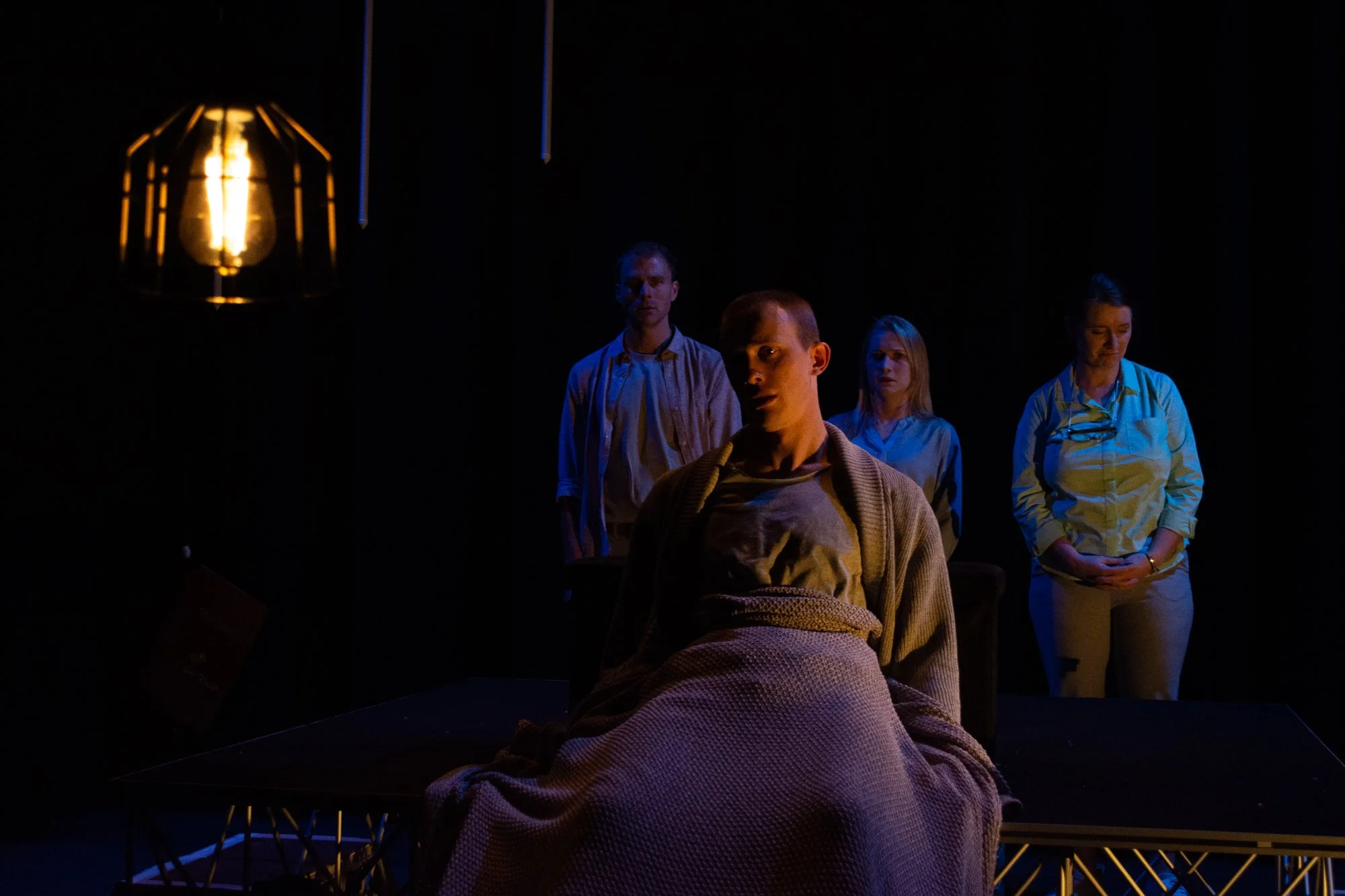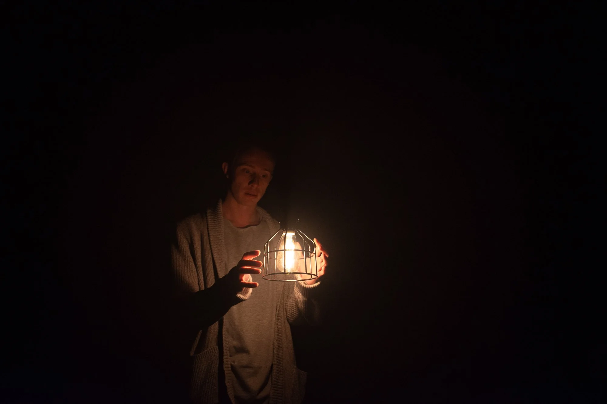 I was inspired by Julie Taymor’s concept of the ideograph to inform how we navigated a play whose often short scenes moved fast across time, place, stages of health and decline. Once we arrived at the central metaphor — light — the hanging pendant light became our ideograph. I attempted to marry this with a constant attention to how feeling technologies — aka stagecraft elements, but really, anything that is doing something with ‘feeling’ (see Erin Hurley’s work) — were working on the audience’s bodies. This meant working with Imogen to achieve an intensity in the sound design, balanced with a delicacy of lighting and costume and simplicity in the set, alongside having very finely tuned physical choices made with the actors, and working with the lead actor Tomas Parrish to use Laban and Chekhov techniques to activate the audience’s mirror neurons at a minute level.